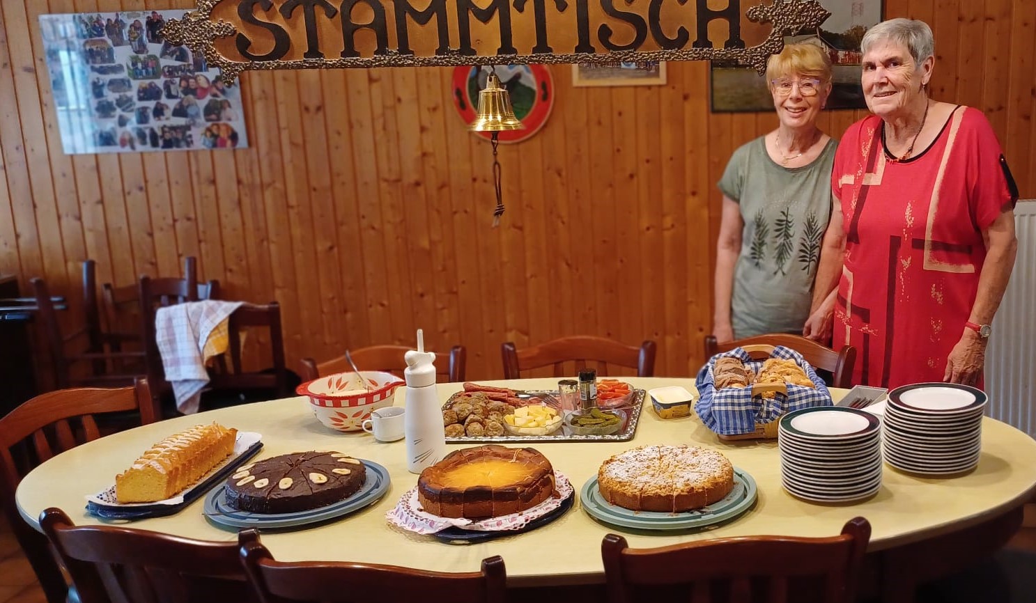 Die Gäste erwartete eine leckere Tafel mit frischem, selbstgebackenem Kuchen. Als herzhafte Alternative gab es Kochkäse und Frikadellen. Das Buffet war wie immer von Hildegard und Marianne selbst zubereitet worden und ist bei den Gästen sehr gut angekommen.