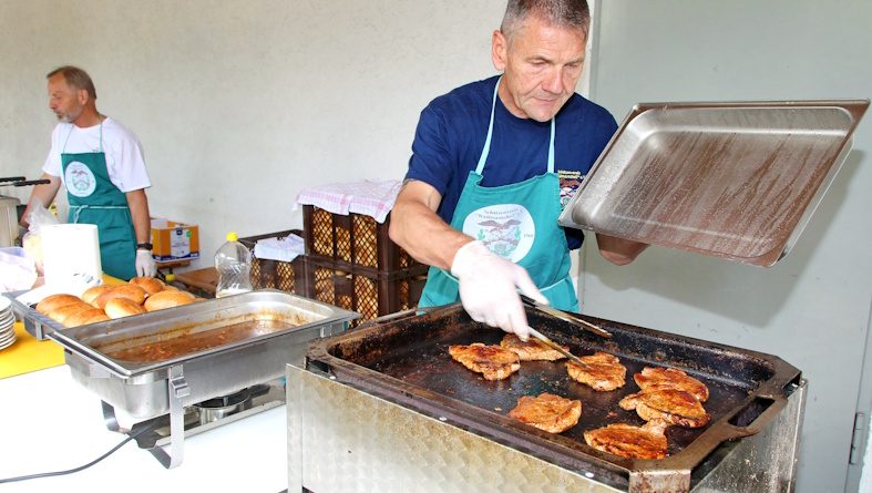 Es gab wieder Steaks und Bratwürste perfekt gegrillt, für die Vegetarier die sehr leckere Pilzpsanne. Zum Nachtisch oder zum Nachmittagskaffe konnten die Gäste nd die gespendeten Kuchen und Torten verzehren!