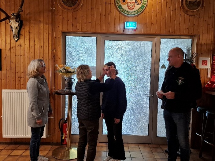 Nach dem Schmaus wurden dann die Majestäten gekrönt und der Hofstaat ausgezeichnet. Dies geschah wie gewohnt souverän durch unseren Schützenmeister Sacha Heinrich, der sich auch sehr herzlich bei allen Helfern, die diese schöne Veranstaltung erst möglich gemacht haben, bedankte.