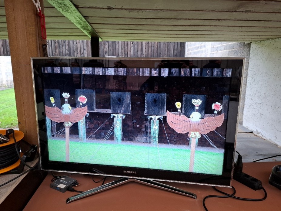 Um die Trefferlage in Echtzeit sehen zu können, hat uns Michael Reich eine Kamera mit großem Bildschirm aufgestellt.